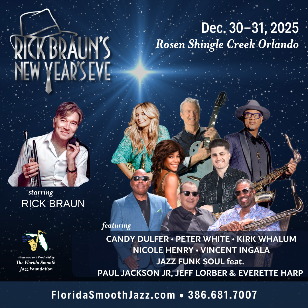Rick Braun's New Year's Eve Getaway starring RICK BRAUN and featuring CANDY DULFER, PETER WHITE, KIRK WHALUM, NICOLE HENRY, VINCENT INGALA and JAZZ FUNK & SOUL feat JEFF LORBER, EVERETTE HARP & PAUL JACKSON JR! Ring in the New Year with music, dining, dancing & hotel accommodations at Rosen Shingle Creek Orlando! 386-681-7007